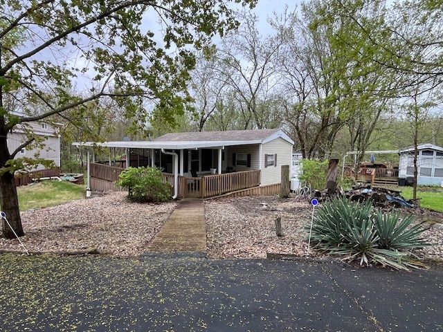 Welcome to your getaway retreat in the gated community of Woodsmoke Ranch! This 1998 Kropf park model on lot 1341 offers 2 bedrooms plus a loft, providing plenty of space for you and your guests. Step inside to find updated wood laminate flooring throughout (installed just 2 years ago), a bay window in the dining area, and a well-appointed kitchen with ample cabinet space and a double sink. Enjoy outdoor living on the spacious entertaining deck, complete with a screened porch (added approx. 6 years ago) that's accessible through sliding glass doors or directly from the deck. The large paved driveway provides plenty of parking, and there's a shed for extra storage. The roof is estimated to be 7-10 years old, and a rented propane tank is already in place. This turnkey property is ready for your weekend escapes or extended stays-just bring your personal items (please note: screened porch furniture is not included). Don't miss this great opportunity to enjoy all that Woodsmoke Ranch has to offer! Category 4 lot with yearly dues of 2382.44 that includes water, electric and garbage. Woodsmoke Ranch amenities: 2 pools, 2 stocked fishing ponds, 3 pavilions, basketball courts, sand volleyball, gaga ball, bags, 2 playgrounds, RC car racetrack, baseball field, laundromat, convenience store, cafe, horse stables (for rent), adult lounge, Mygrain Saloon, events planned year long and so much more. Gated community; showings by appointment only. RV campground community, cannot be a primary residence.